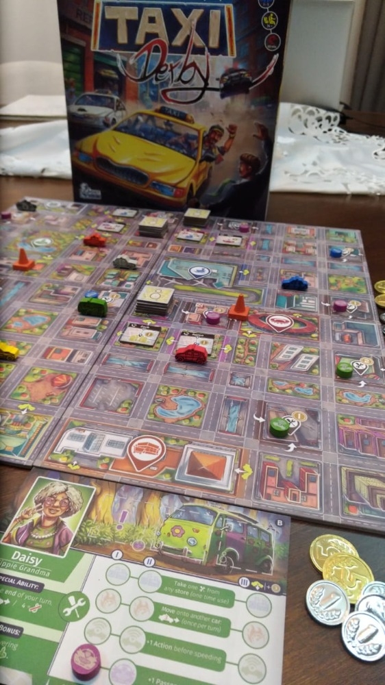 Taxi Derby é um jogo de tabuleiro temático de pegar e entregar com mecânica de construção de motores e jogabilidade de empurrar a sorte da Skipshot Games. Este competitivo jogo de estratégia de peso médio é para 1-5 jogadores e pode ser apreciado por toda a família.