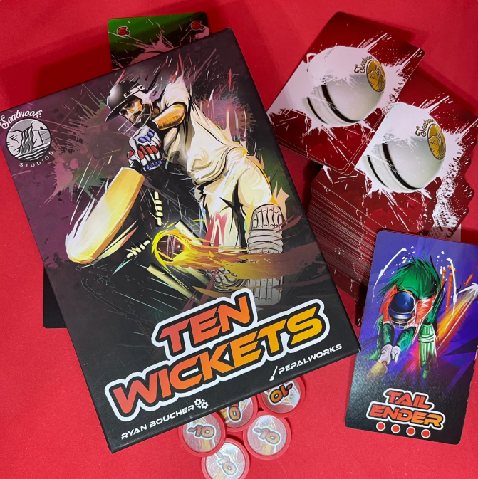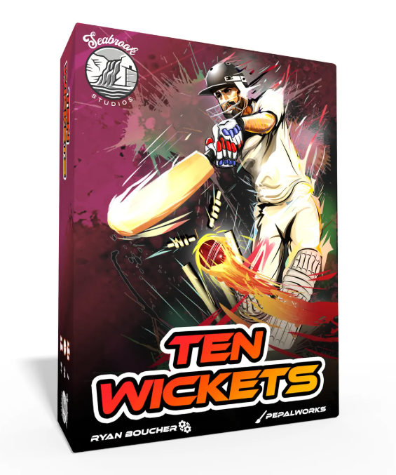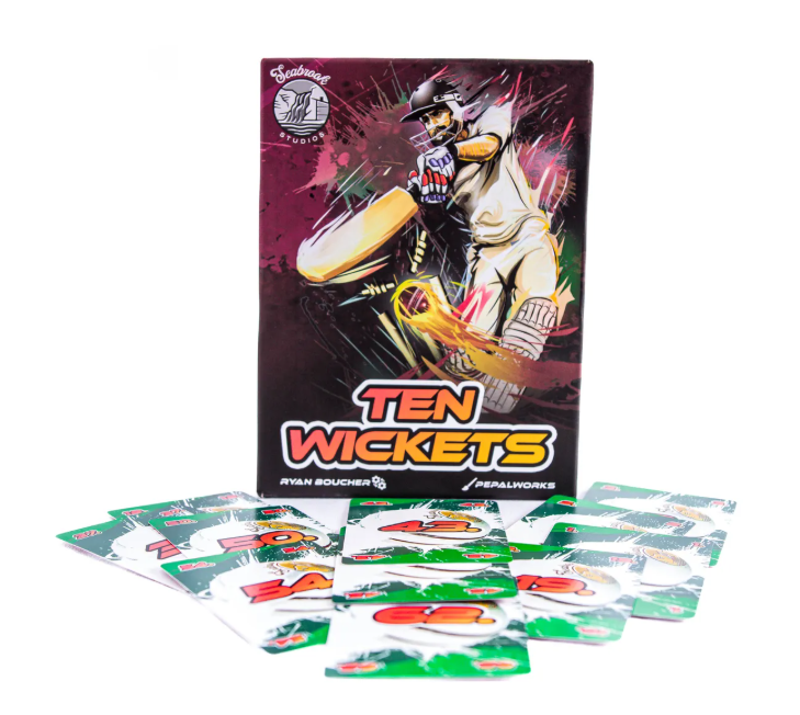 Ten Wickets é um jogo de leilão inspirado no críquete de um dia. Cada jogador assume o papel de um capitão adversário, tentando derrubar 10 wickets com o menor número de corridas possível. Cada wicket derrubado concede corridas (pontos) ao seu oponente, e o jogador com mais corridas vence a partida. Derrube os wickets, pague as corridas e não seja eliminado sem dez wickets no final do jogo.