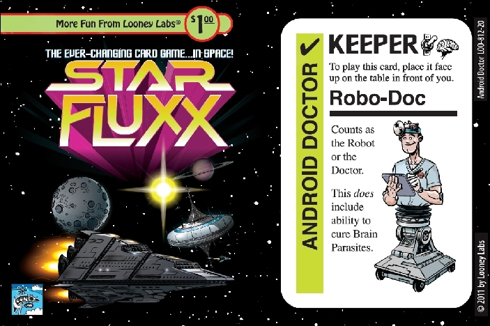 The Android Doctor é um Keeper para Star Fluxx que conta como Robô ou Médico, e pode ser usado para curar Parasitas do cérebro. Não será útil em outras versões do Fluxx.