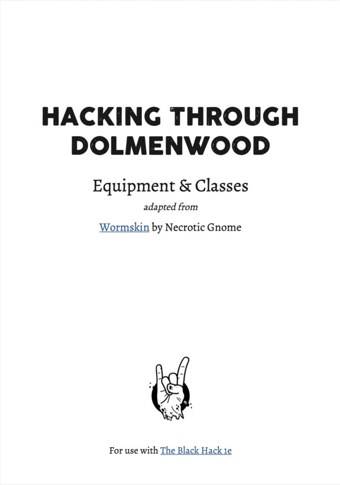 Essas conversões eliminam as classes gloriosamente cobertas de musgo encontradas nos zines Wormskin do Necrotic Gnome para se adequarem ao estilo visual e leve de regras do The Black Hack.