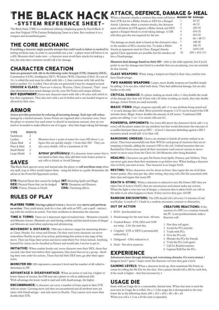 2. The Black Hack (2nd Edition) - The Black Hack System Reference Sheet