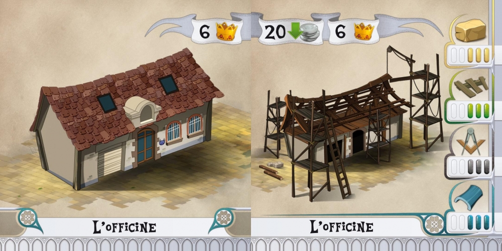 - Atribuir um trabalhador a um edifício - pague o custo do trabalhador e depois colocá-lo em um edifício, quando forem atendidas as necessidades da construção, você ganha pontos e moedas indicado, em seguida, virar para construir de novo. Os trabalhadores retornar à sua reserva de mão de obra disponível.