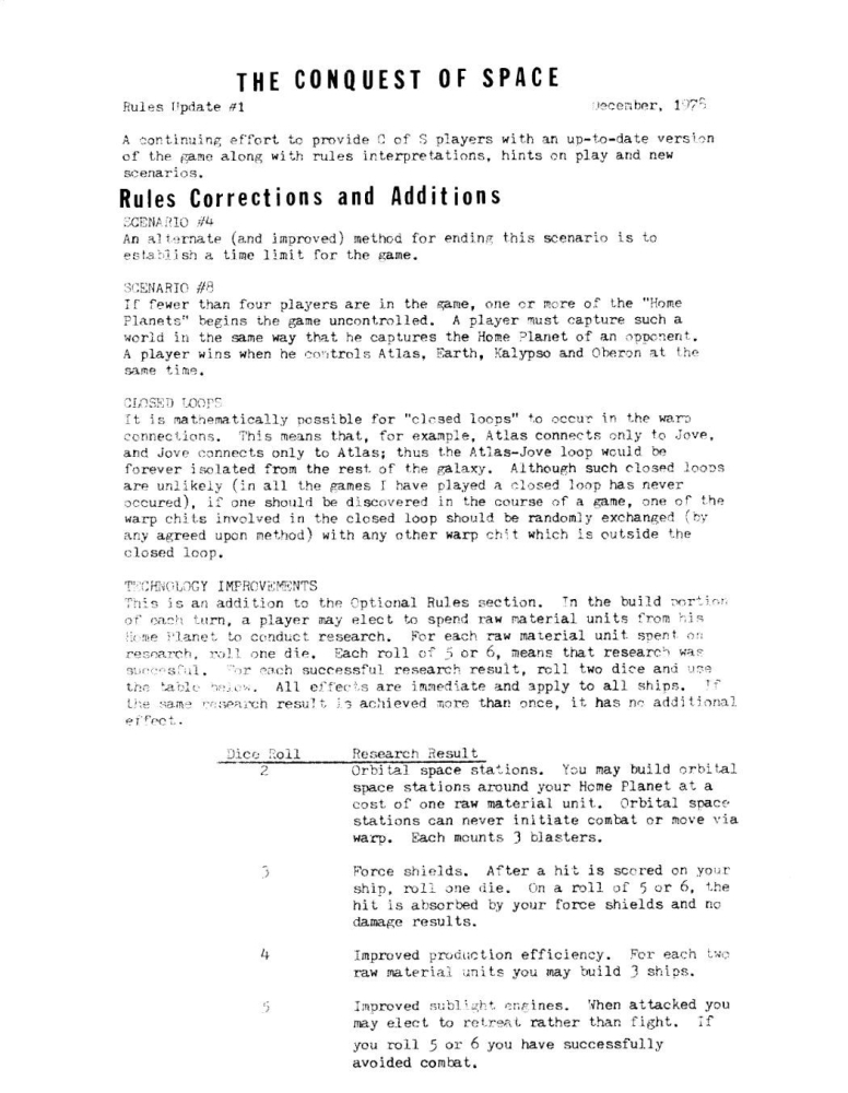 The Conquest of Space: Rules Update #1 (1978)