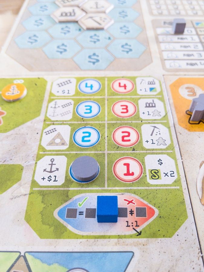 Os jogadores então usam um sistema único para elaborar três ações para a rodada. Essas ações podem ser uma mistura de construção de minas, construção de refinarias, obtenção de subsídios do governo, estabelecimento de ferrovias e estabelecimento de portos. Depois que todos os jogadores executaram suas ações, eles podem converter seu dinheiro (ou seja, pontos de vitória) em recursos de países específicos, com cada país tendo sua própria taxa de conversão.