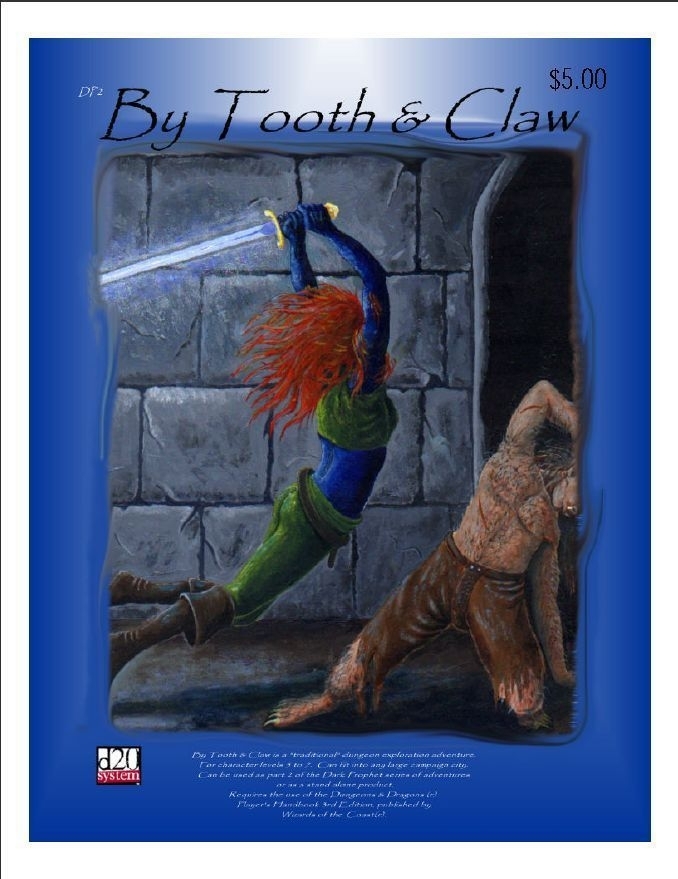 By Tooth & Claw é uma aventura d20 baseada em masmorras de 35 páginas para quatro a seis personagens de quinto a sétimo nível. O módulo pode ser jogado em duas ou três sessões de jogo. O grupo precisará de armas mágicas e de alguns lutadores e curandeiros robustos para sobreviver. O final do cenário pode levar os aventureiros a uma campanha contínua.