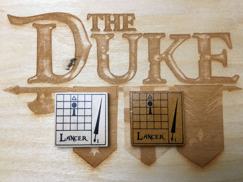 O ladrilho promocional do Lancer foi distribuído como recompensa de participação para aqueles que entraram no torneio Gen Con 2014 para o The Duke.