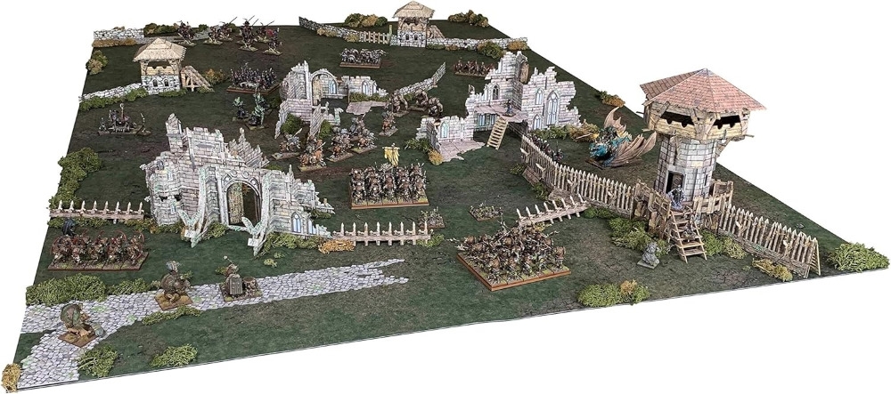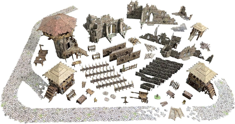 Esta caixa contém todo o terreno que é necessário para uma mesa de jogo completa representando um campo de batalha devastado pela guerra, adequado para muitos jogos de fantasia e históricos de 28-35 mm. Você pode compactar o terreno em um pequeno tabuleiro de escaramuça ou espalhá-lo sobre uma mesa maior. Muitas das peças são modulares e podem ser montadas em qualquer combinação que você escolher para uma configuração diferente a cada vez. Os telhados são removíveis e os edifícios têm interiores totalmente detalhados.