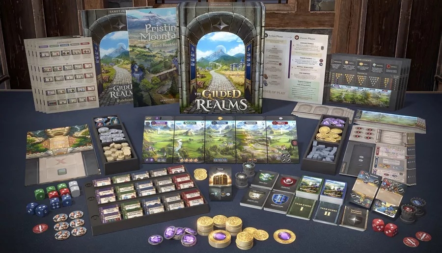 The Gilded Realms é um jogo de construção de reinos em um mundo de fantasia medieval. As facções foram convidadas pelo imperador para colonizar os vales das Montanhas Imaculadas.