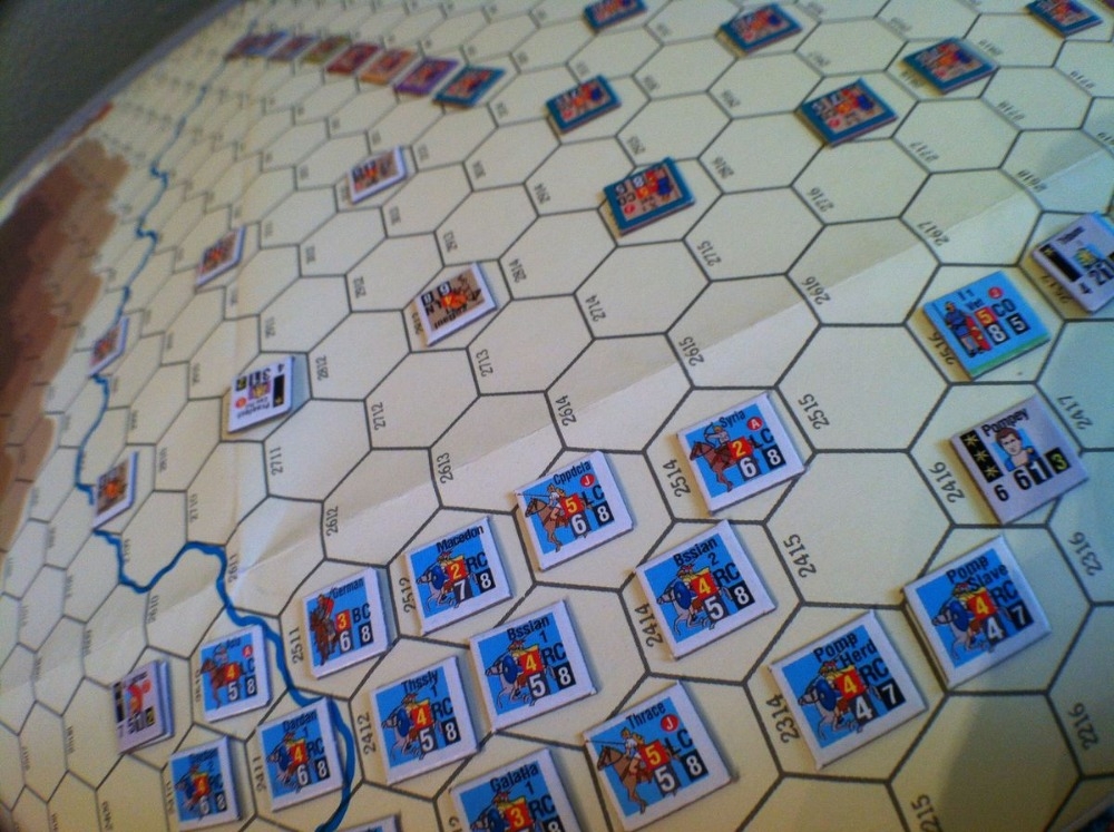 Great Battles of Julius Caesar recria 5 batalhas, usando o sistema básico GMT Great Battles of History (GBoH):