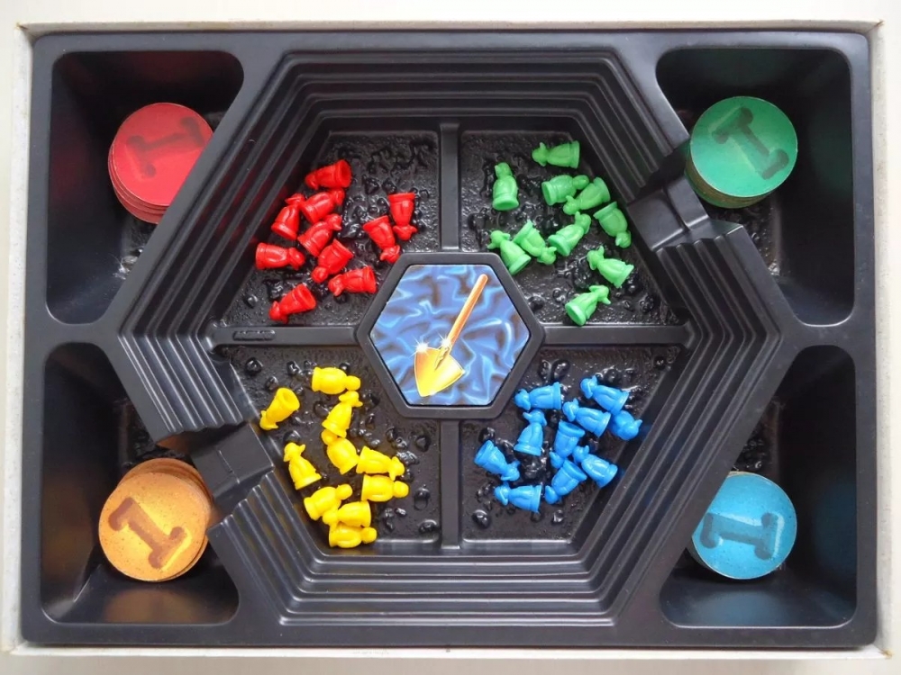 Um jogo infantil que é igualmente divertido para adultos. Os jogadores movem as suas toupeiras, que estão em uma jornada para cavar o subterrâneo em busca da Pá de Ouro. Uma característica distintiva deste jogo são os multiplos tabuleiros - há quatro tabuleiros colocados em cima uns dos outros, cada um com buracos levando "para baixo" onde se encontra o próximo nível. Os jogadores movem as suas toupeiras para os buracos e, quando um tabuleiro é "completado" (ou seja, todos os buracos ocupados), ele é removido do jogo junto com todas as toupeiras remanescentes sobre ele. Os jogadores continuam cavando seu caminho para baixo, com cada tabuleiro tendo menos buracos do que o anterior, até que atinjam o nível final, que tem apenas um buraco que leva a Pá de Ouro. Um jogo simples, peças coloridas, divertido com ou sem as crianças!