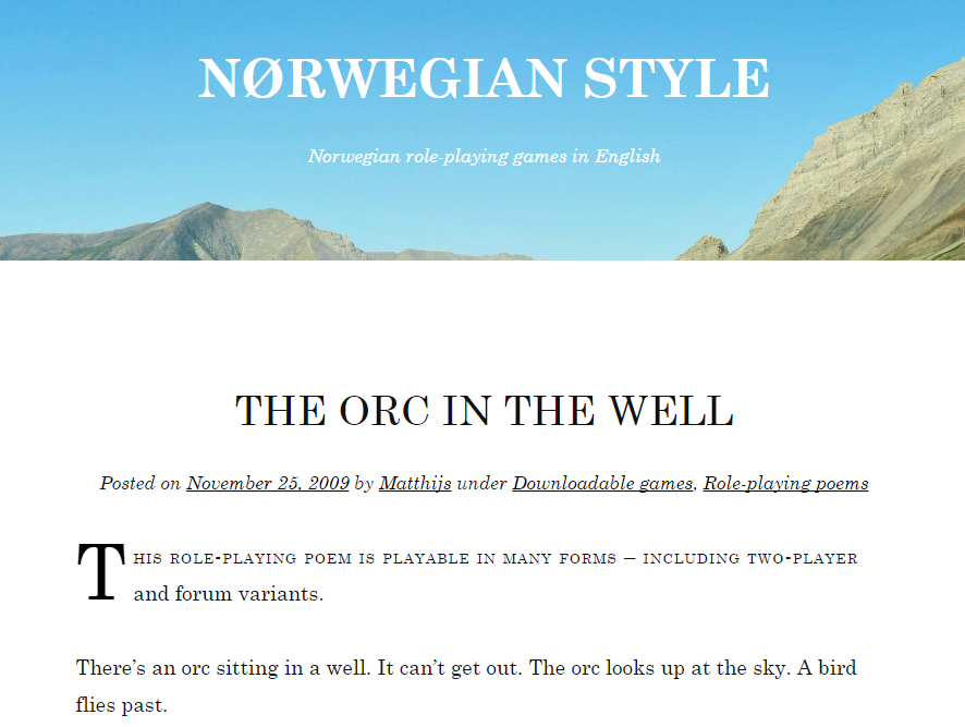 The Orc in the Well é um jogo de interpretação, que é jogado em 15 minutos. Pode ser jogado com dois ou mais jogadores. No jogo, os jogadores contam em colaboração uma história sobre um orc que está em um poço.