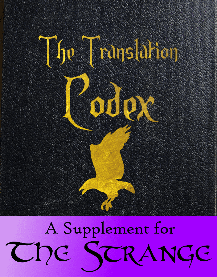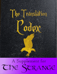 Contendo 100 Foci (cada um em sua própria página facilmente imprimível) e 18 novas recursões, The Translation Codex é um item obrigatório para aqueles que desejam sondar as profundezas do cosmos próximo de recursões e Strange. PCs e GMs que desejam construir mundos a partir de suas ficções e tropos favoritos acharão este tomo essencial e instigante.