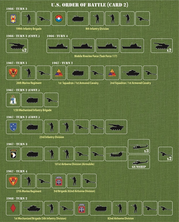 Um jogo relativamente simples porém realista, não há nenhuma simulação da guerra do Vietnã como essa e não é provável que haverá outra no futuro. Esse jogo pode ser jogado em cenários individuais em diferentes períodos da guerra ou como a guerra inteira pelos mais de 10 anos do conflito, em um mapa que abrange todo Vietnã do Sul e partes do Camboja, Laos, Vietnã do Norte e Tailandia, com pelo menos 800 miniaturas, incluindo unidades de ar, terra, mar e rio em uma partida que pode ser jogada em alguns finais de semana.