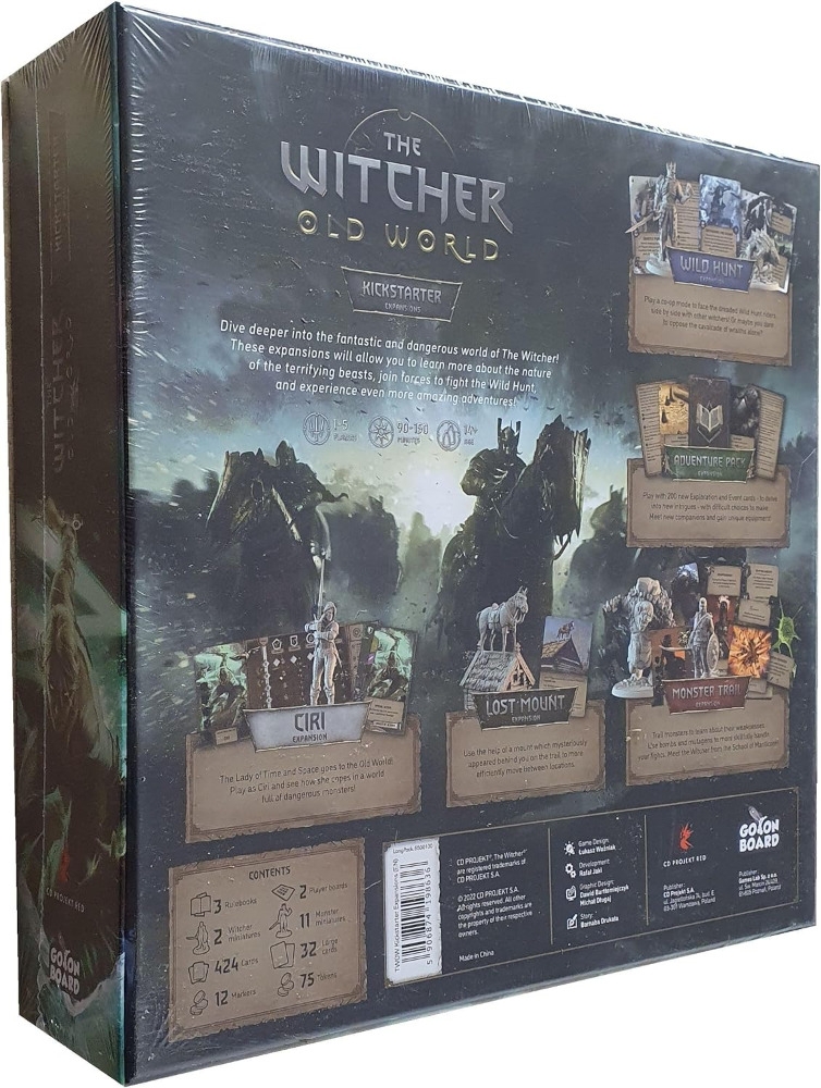 Esta é a expansão Kickstarter para The Witcher: Old World, e inclui a expansão Wild Hunt, a expansão Monster Trail, a expansão Ciri, a expansão Lost Mount e a expansão Adventure Pack.