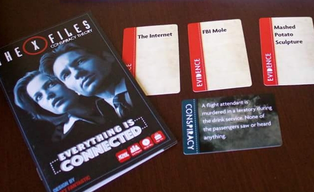 Em Arquivo X: Teoria da Conspiração - Tudo está conectado, os jogadores se revezam como Fox Mulder enquanto ele usa as pistas fornecidas para explicar sua teoria da conspiração aos seus superiores do FBI. Mas a reputação é tudo no FBI, e os superiores de Mulder estão mais interessados ​​em votar na sala do que em sua crença. Mulder entrelaça a conspiração, e os superiores devem deduzir a maneira como o resto da sala votará... porque a única coisa pior do que ser um caso atípico é ser um maluco como Fox Mulder.