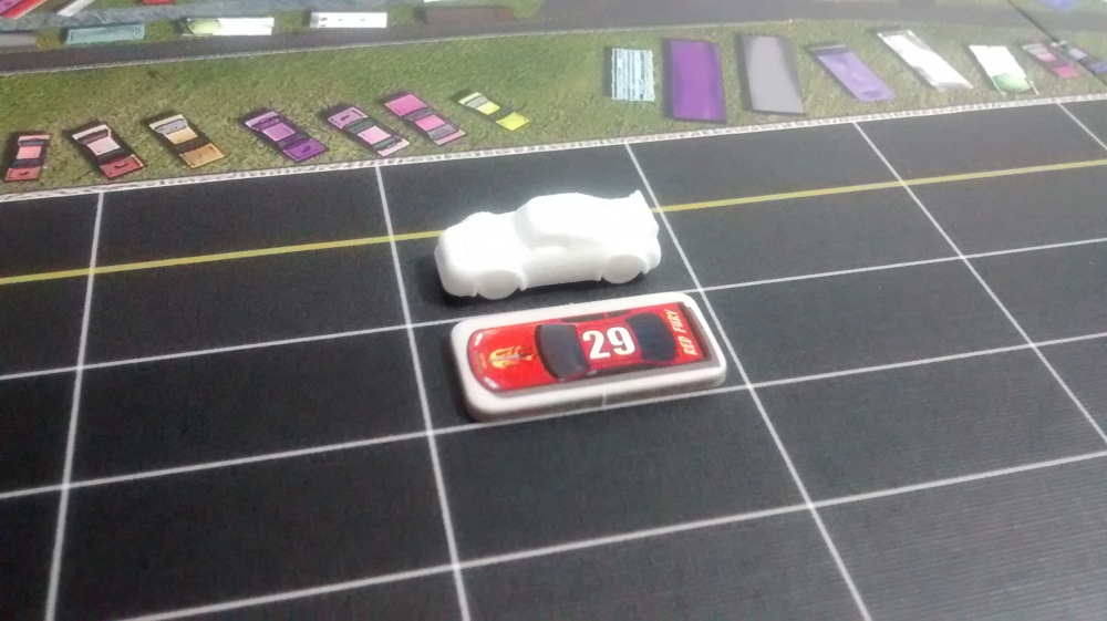 O carrinho foi feito especialmente para o jogo THUNDER ALLEY, reparem no tamanho, o mesmo dos tokens originais do jogo.