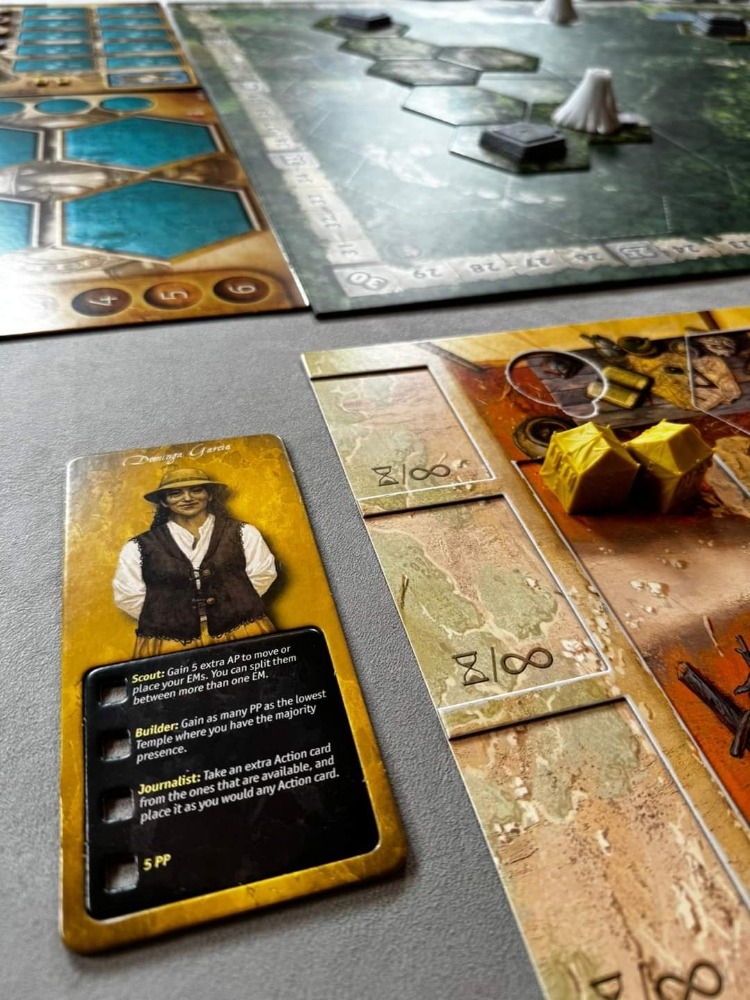 Jogo em andamento - fotos de protótipo divulgadas pela Super Meeple