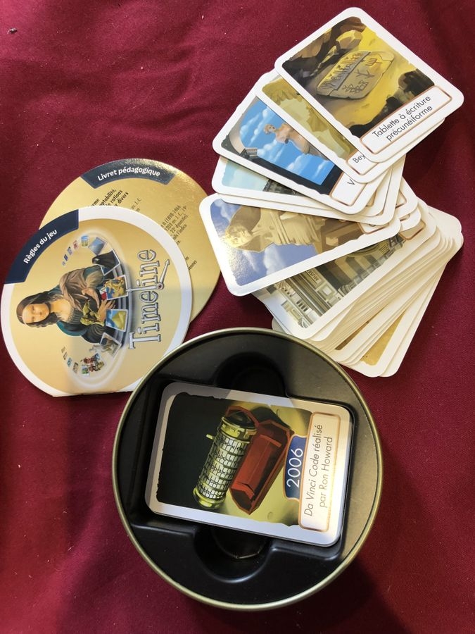 Timeline: Louvre leva os jogadores por um tour histórico do Louvre. Cada jogador tem uma mão de cartas, e eles se revezam tentando colocá-las corretamente na linha do tempo crescente. Adivinhe corretamente para se livrar de todas as suas cartas e ganhar!