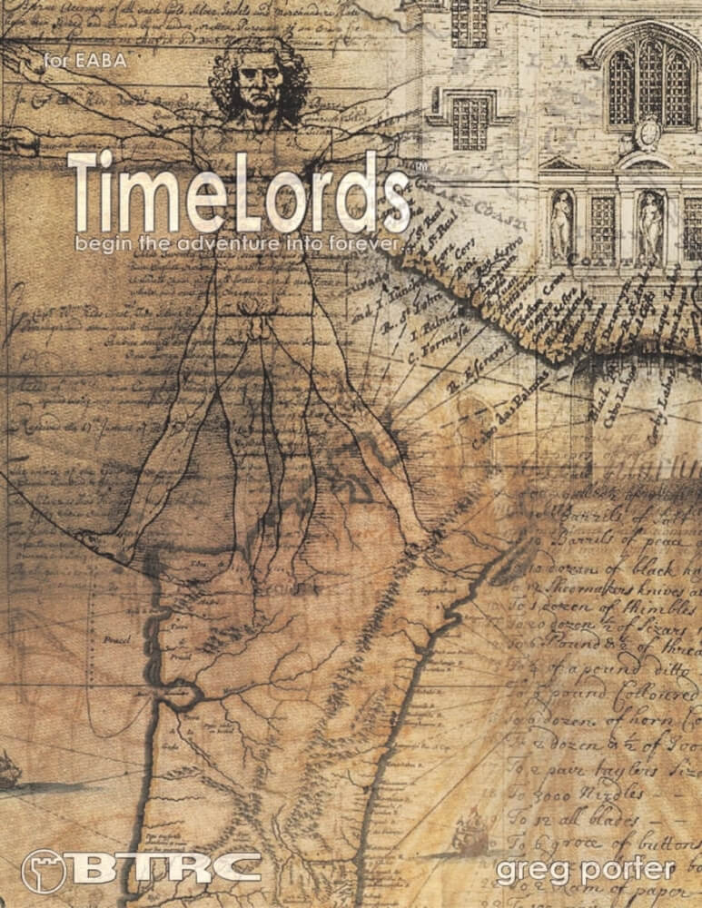 Os Designers desenvolveram viagens no tempo para ajudá-los a escapar da morte por calor do universo, mas em vez disso encontraram a extinção no passado distante. Por uma reviravolta do destino, a humanidade herdou a capacidade de manipular sua tecnologia, para melhor ou para pior. Tudo o que você sabe sobre a história foi moldado por aqueles raros indivíduos que podem saltar através do tempo e da dimensão. E agora, despreparado para isso, você se tornou um desses indivíduos... EABA TimeLords é a terceira edição deste rpg clássico, cuja característica mais exclusiva é que permite criar aventureiros que refletem suas estatísticas e habilidades, lançados no tempo infinito e espaço com apenas sua inteligência e seus amigos para ajudá-lo a sobreviver. E quando você desvendar os mistérios do salto dimensional e puder voltar para casa novamente, você vai querer? Você também pode gerar versões históricas alternativas de si mesmo, membros regulares de uma Patrulha do Tempo como os Guardiões, ou combinar os dois. TimeLords contém uma enorme quantidade de informações básicas sobre o(s) universo(s), incluindo histórias reais e alternativas, e uma bibliografia de ficção de viagem no tempo, filmes de viagem no tempo e outros jogos de RPG de viagem no tempo.