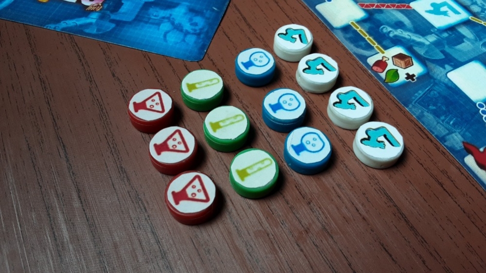 Componentes da expansão Laboratory feitos de forma caseira, utilizando peças do jogo War