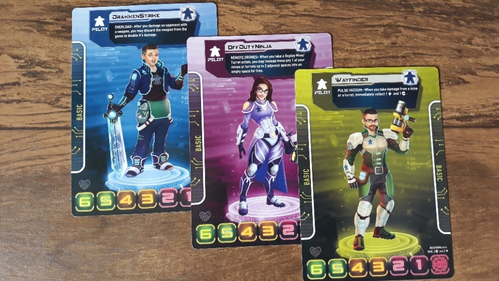 03 Pilotos para Tiny Epic Mech (Wayfinder, OffDutyNinja, DrakkenStrike);
