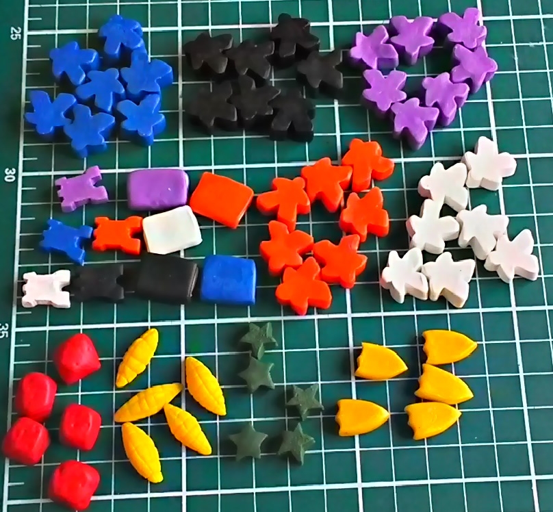 Componentes feitos em biscuit para a versão print and play DELUXE! Marcadores de ação ficaram dourados, apesar de não parecer na foto.