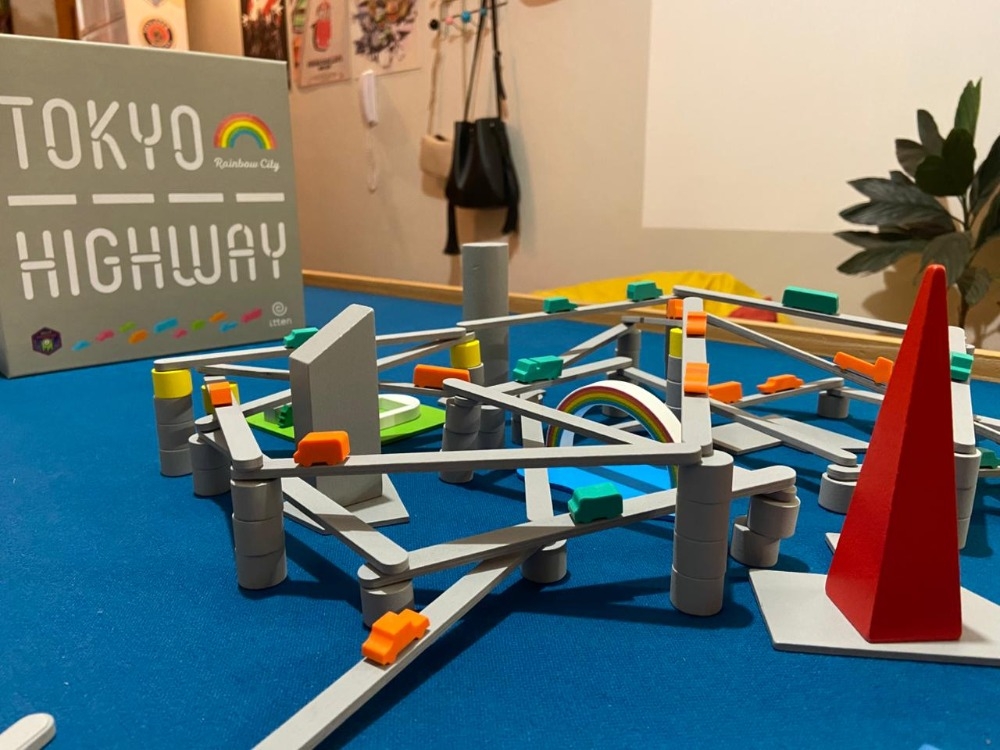 Tokyo Highway: Rainbow City / トーキョーハイウェイ レインボーシティ é uma nova edição do jogo Tokyo Highway, com novos elementos de jogabilidade e componentes atualizados que tornam o jogo mais fácil de jogar... o que pode ser bom ou ruim, dependendo da sua preferência por estradas desmoronando.