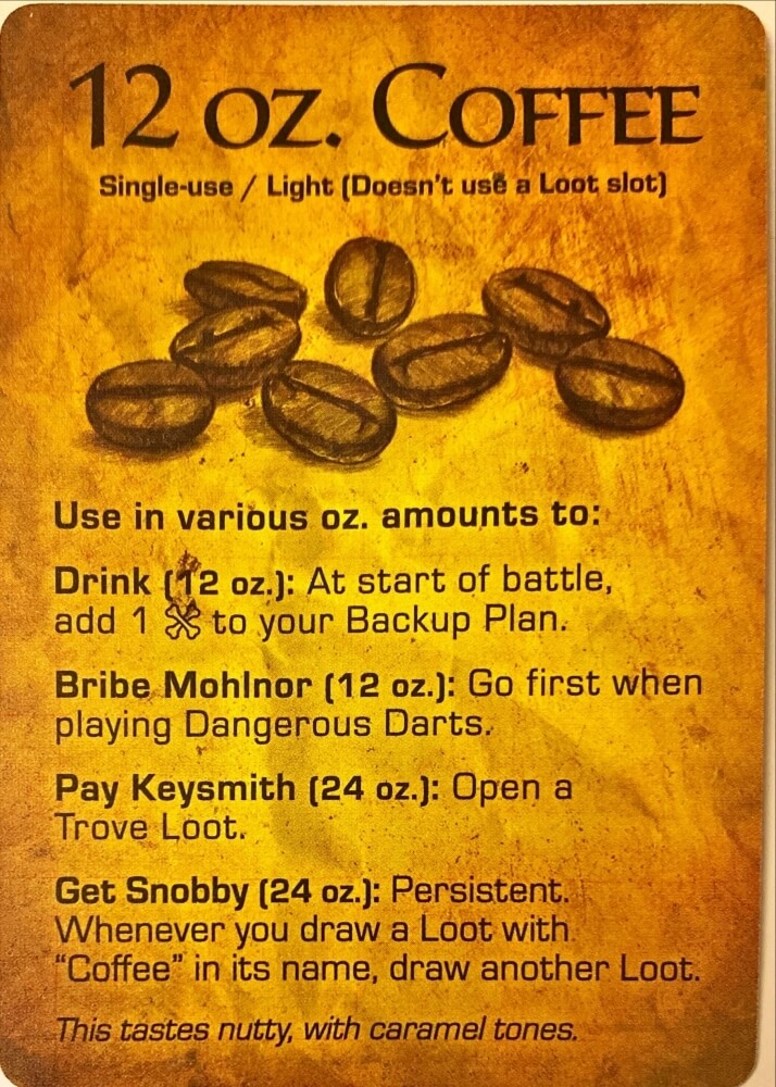 Get Snobby (24 oz.): Persistente. Sempre que você sacar um Loot com "Coffee" no nome, compre outro Loot.