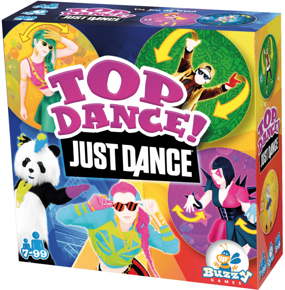 Em Top Dance! Just Dance, baseado na série de videogame Just Dance, a cada rodada os jogadores olham secretamente para um dos cartões de coreografia, então todos correm para encontrar o cartão de harmonização sobre a mesa. Se alguém encontrá-lo no tempo, tanto o dançarino quanto o adivinhador mantém essas cartas.