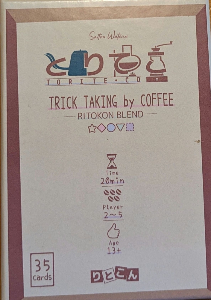 Torite Co (Trick Taking by Coffee Ritokon Blend) é um jogo de vaza com must-follow jogado em times, onde o objetivo é preparar o máximo de café possível porque seu salário depende disso!