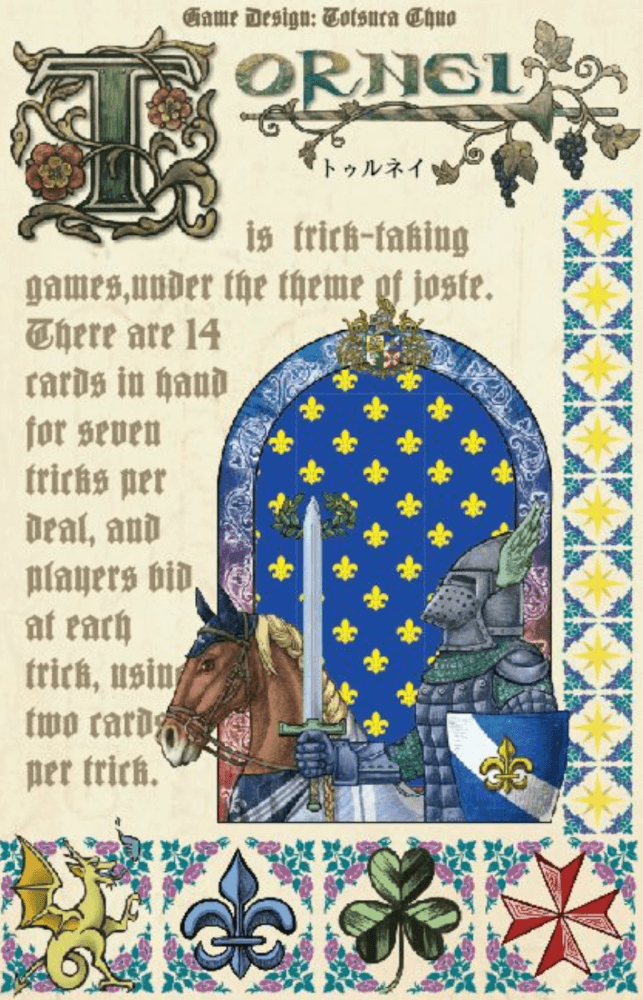 Tornei é um jogo de vazas com o tema de justa.