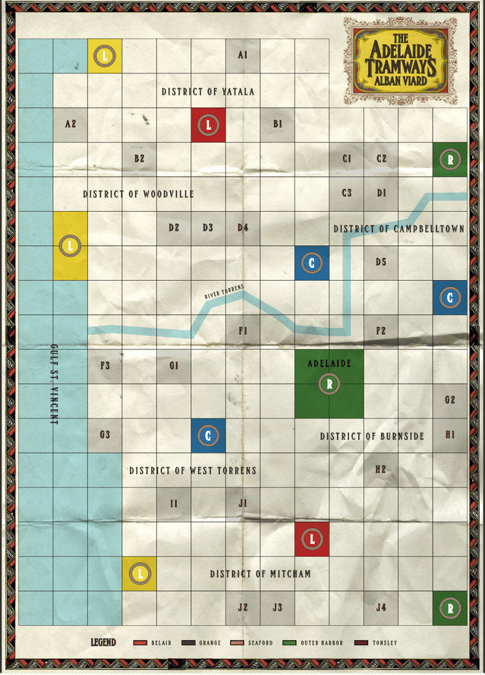 Tramways: Adelaide / Shanghai inclui um tabuleiro grande de 42 cm × 60 cm com 2 lados, dobrado em 4 seções, com um mapa de Adelaide da década de 1920 de um lado e um mapa de Xangai do outro lado. Também inclui uma folha de regras A4 que explica as diferenças das regras e as peculiaridades de cada mapa.