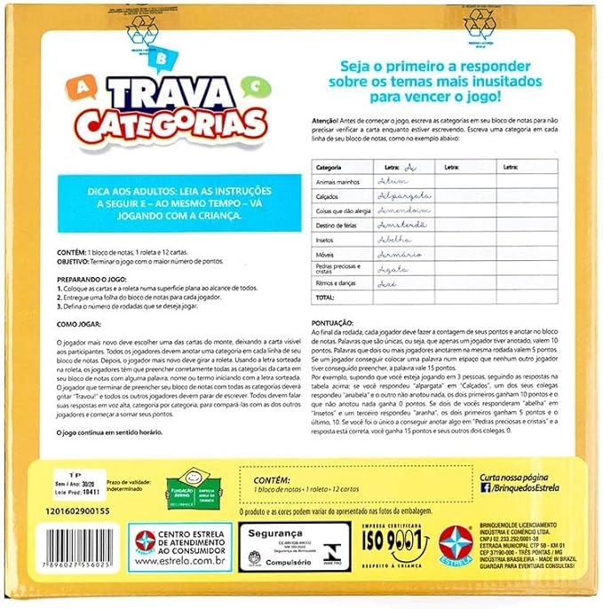 Com uma letra, sorteada pela roleta, os jogadores devem responder as categorias do jogo. Os jogadores tem que somar os pontos ao final da rodada para descobrir quem será o campeão.