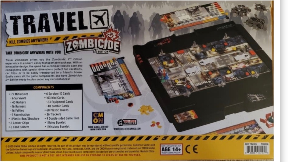Travel Zombicide oferece a você a experiência Zombicide: 2nd Edition em um pacote inteligente e facilmente transportável. Com design inovador, o jogo possui caixa plástica compacta e componentes com dimensões especiais perfeitos para férias, viagens de carro ou para ser facilmente transportado para a casa de um amigo. Carregue facilmente todos os componentes do jogo e tenha Zombicide: 2nd Edition pronto para jogar em qualquer circunstância!