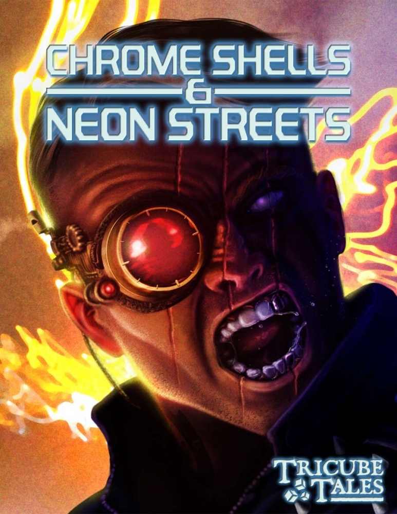 Inspirado na ficção cyberpunk popular, Chrome Shells & Neon Streets é um cenário autônomo para o sistema Tricube Tales e pode ser usado como um micro-cenário, mas também é um RPG de uma página totalmente independente. Você pode imprimi-lo em uma única folha de papel: a primeira página inclui tudo que você precisa para jogar, enquanto uma segunda página opcional expande o gerador de aventura com exemplos e reviravoltas.