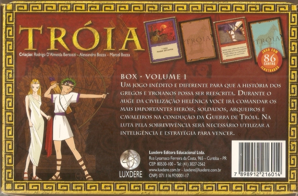 Troia é um de jogo de cartas brasileiro para 2 jogadores sobre a Guerra de Tróia.