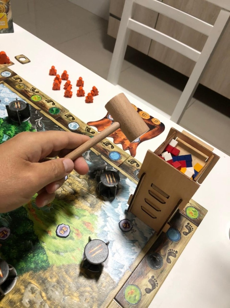 Trollfjord é o jogo de estratégia familiar onde um sólido martelo de madeira encontra uma sólida torre de madeira!