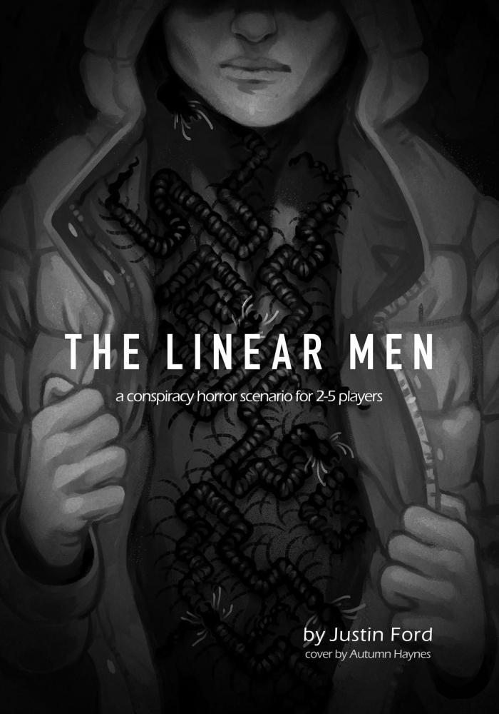 The Linear Men é um cenário em dois atos. Projetado para CDG e Trophy Dark, ele também contém regras e orientações sobre como executar incursões e investigações em qualquer sistema.