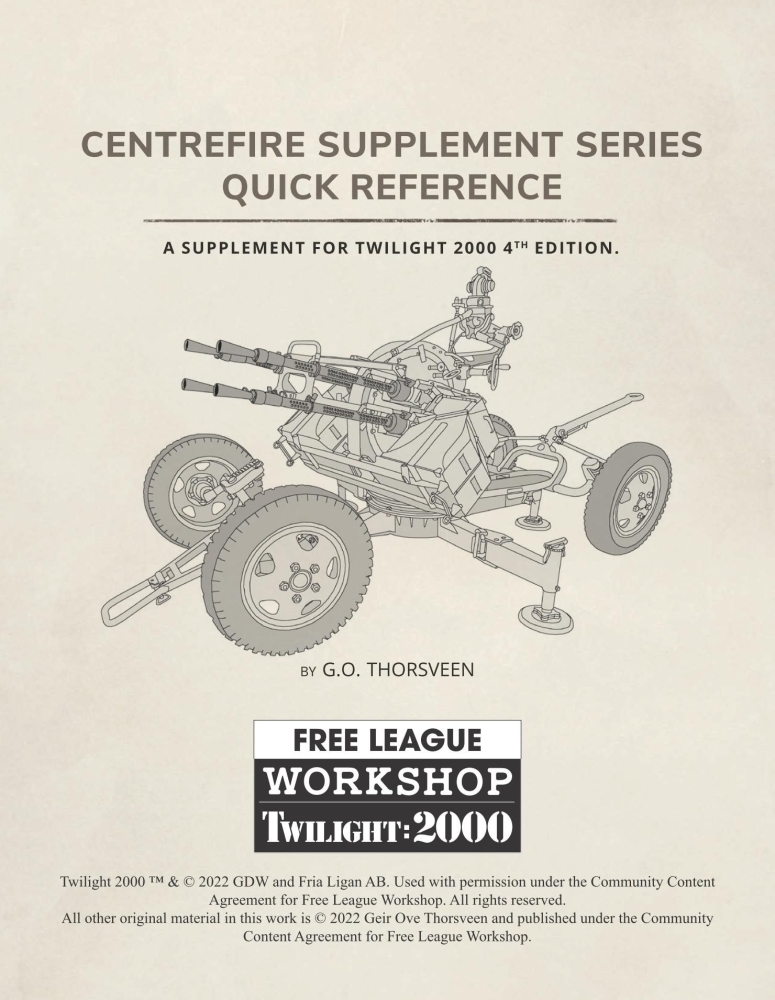 2. Twilight: 2000 (4th Edition) - Centrefire Supplement Series Quick Reference