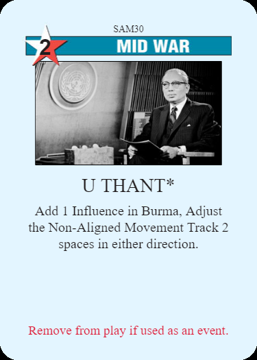 Twilight Struggle: South Asian Monsoon é um jogo de cartas stand-alone para dois jogadores baseado no premiado Twilight Struggle. Enquanto os Estados Unidos e a União Soviética estavam presos na Guerra Fria, a região do sul da Ásia assumiu uma nova importância. À medida que países recém-independentes se formaram a partir dos restos de impérios europeus em ruínas, cada superpotência lutou para estabelecer influência com essas nações incipientes. Alguns países do sul da Ásia jogaram os EUA e a URSS um contra o outro, buscando maximizar investimentos, ajuda e assistência militar em troca de bases, favores políticos e expressões de apoio. Alguns permaneceram “não-alinhados” e se recusaram a ingressar formalmente em qualquer um dos dois blocos – o que não os impediu de receber generosos pacotes de ajuda – e outros buscaram a criação de um terceiro bloco, alinhado com a China.