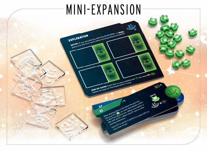 Mini-expansão Aliens: É ET! O módulo adiciona um novo tipo de peça, fichas e um novo tabuleiro de Exploração. Se você incluir o jogo base, a expansão How I Wonder e a mini-expansão Aliens, você terá acesso a 14.784 configurações!
