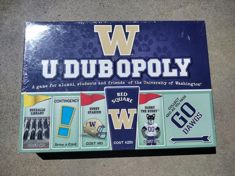 Este é o seu monopólio típico de arrecadação de fundos. Este se passa na Universidade de Washington, conhecida pelos habitantes locais como "U Dub" em vez de U de W. A Universidade de Washington fica em Seattle.