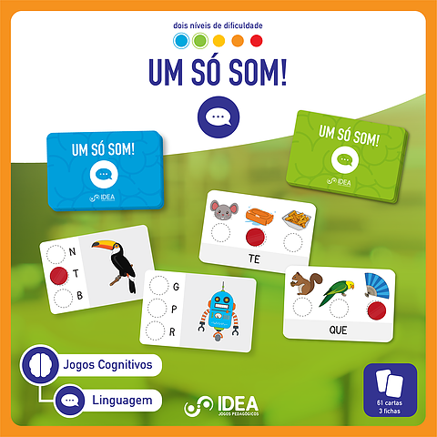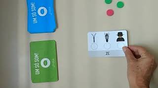 ​No segundo nível (cartas verdes) a atividade exige a identificação da sílaba em destaque em uma das 3 imagens.