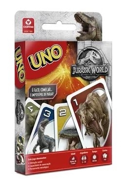 O Jogo Uno Jurassic World Copag contém 110 unidades de cartas no formato 56 mm x 87 mm e desenvolve interação social, capacidade de associação e pensamento estratégico.