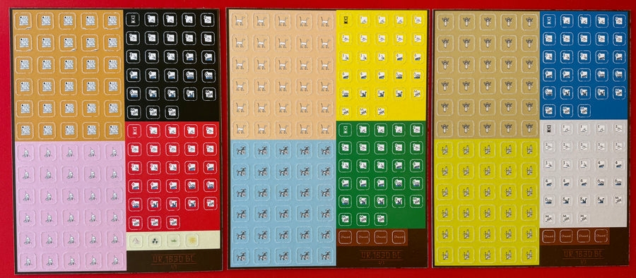 Sequence markers (hourglasses) and waterworks in the six colours of the states: Akkad (grey), Babylon (blue), Elam (green), Persia (black), Sumer (yellow) and Urartu (red);