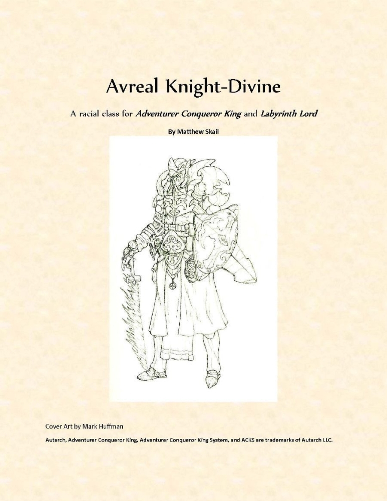 Apresentando uma nova classe de raça para o Rei Aventureiro Conquistador e o Senhor do Labirinto, os Avreal como uma raça reivindicam descendência dos anjos da Lei. Hábeis em magia divina e guerra, esses guerreiros sagrados estão igualmente ao lado de clérigos e paladinos humanos. Esta nova classe de 12 níveis pode trazer a ira divina para qualquer jogo OSR!