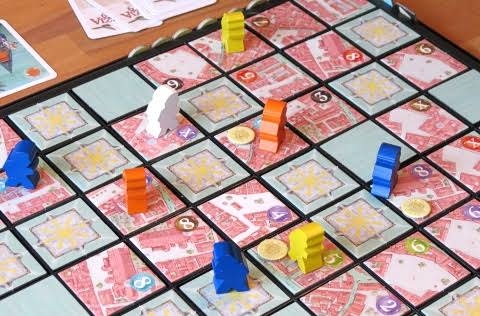 - 64 peças de tabuleiro (48 de distritos da cidade e 16 de plataformas flutuantes)