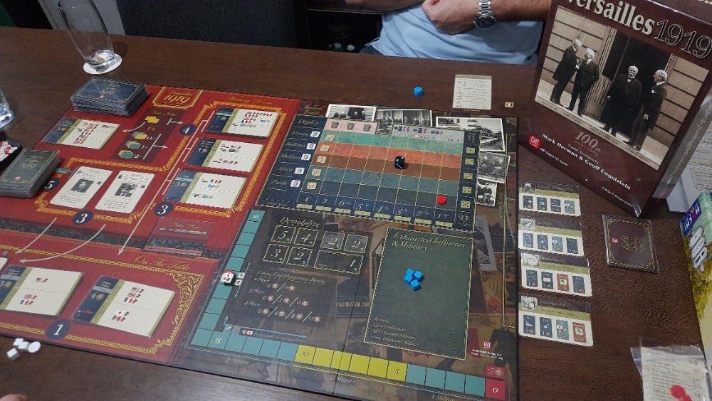 O Versailles 1919, criado pelos designers Mark Herman e Geoff Engelstein, permite que você experimente esse pedaço da história como um dos quatro líderes com uma agenda nacional que deve ser satisfeita. Como um dos Big Four, você se senta em uma sala de conferências, ganhando influência sobre os problemas presentes na sala. Pairando na sala de espera estão outros assuntos e personagens que estão esperando sua vez para defender suas aspirações regionais como a autodeterminação. Você apoiará a tentativa de Ho Chi Minh de libertar o Vietnã do colonialismo francês? Ajudar o Príncipe Feisal a estabelecer uma nova nação na Mesopotâmia ou Chaim Weitzman criar um estado sionista? Trabalhar com TE Lawrence para reduzir a agitação no Oriente Médio ou com Ataturk na Anatólia?