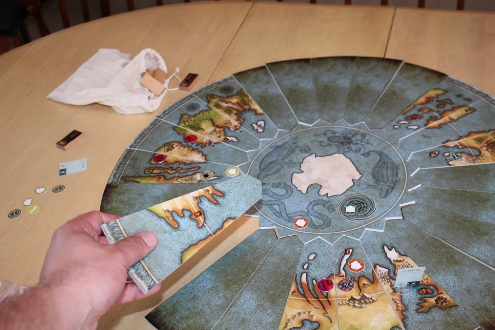 O jogo se situa em um tabuleiro modular redondo composto por 24 tiles, que permanecem virados para baixo até que um jogador resolva explorá-lo.
