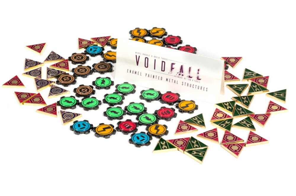 Tokens de metal dupla face que substituem os marcadores de instalação e guilda (tanto para a versão Retail quanto para a Galatic Box)